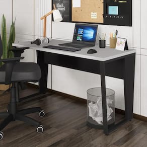 Diferenciais: - Produzida em MDP proveniente de reflorestamento: durável e sustentável. - Acabamento em BP: superfície sofisticada e fácil de limpar. - Tampo de 30mm: suporta até 25kg para apoiar materiais de trabalho. - Pés metálicos em formato trapézio: oferecem resistência e elegância. - Sapatadas niveladoras: maior estabilidade ao móvel.