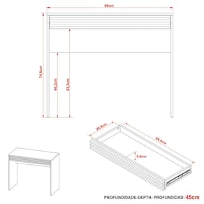 Dimensões da Escrivaninha Mesa de Escritório 90 cm 1 Gaveta Ripado: