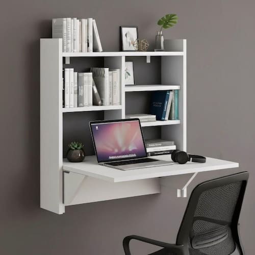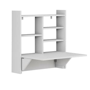 Escrivaninha Mesa Dobrável com Estante Branco. A Estante de Parede com Mesa Dobrável é Compacta, Moderna e Funcional Perfeita para ambientes com pouco espaço, esta estante de parede com mesa retrátil une praticidade e estilo em um só móvel. Com design moderno e acabamento clean, ela conta com prateleiras para livros, objetos decorativos e itens do dia a dia, além de uma mesa dobrável que se transforma em uma estação de trabalho funcional. Ideal para quem precisa de um espaço organizado e versátil para estudar, trabalhar ou simplesmente decorar com inteligência. Otimize seu ambiente sem abrir mão da elegância e da utilidade.