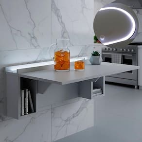 Escrivaninha Mesa Dobrável com Nichos com Led Neon Branco. Dê um upgrade no seu espaço com a Escrivaninha de Parede com LED Branco Frio o equilíbrio perfeito entre modernidade e funcionalidade! Com design clean e iluminação embutida, ela transforma qualquer ambiente em um cenário inspirador, ideal para estudos, trabalho ou momentos de criatividade. Seu sistema de LED cria uma atmosfera envolvente e futurista, enquanto o formato compacto economiza espaço sem abrir mão do estilo. Prática, elegante e versátil, é a escolha ideal para quem busca sofisticação e personalidade no home office ou quarto.
