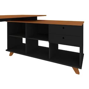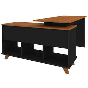 Escrivaninha Mesa em L Escritório com Gavetas e Nichos Gold Freijó/Preto - Mesa em L Home Office com Gavetas e Nichos Gold