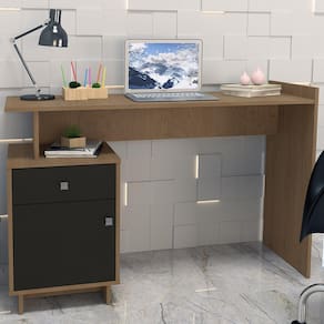 Escrivaninha Mesa Escritório 1 Porta e 1 Gaveta B33, é a peça que faltava para completar seu escritório ou home office com estilo e praticidade. Estrutura produzida em MDP de 15mm, contando com acabamento FF (Fosco), garantindo durabilidade e estabilidade ao produto. Composta por 1 Porta equipada com dobradiças metálicas e puxador em plástico, 1 gaveta com puxador em plástico resistente e corrediças metálicas. Suportando até 20kg o tampo e 5kg a gaveta. Com um design clean e funcional, ela é perfeita para quem valoriza a organização e a qualidade no mobiliário. Este móvel chegará na sua casa separado em 1 volume.