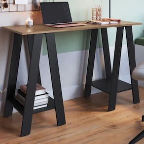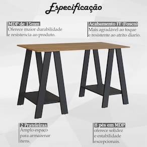 Escrivaninha Mesa Escritório Cavalete 2 Prateleiras B61, é um verdadeiro reflexo de eficiência e beleza, ideal para quem busca estilo e funcionalidade. Estrutura produzida em MDP de 15mm, contando com acabamento FF (Fosco), proporcionando maior durabilidade e resistência a peça. Composta por 2 prateleiras com amplo espaço para armazenar itens e 8 pés tipo cavalete com estabilidade excepcional. Suportando até 20kg o tampo e 5kg cada prateleira. Perfeita para deixar seu ambiente produtivo, belo e organizado, ideal para ser utilizada em home office, escritório ou um cantinho de estudos. Este móvel chegará na sua casa separado em 1 volume.