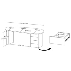 A harmonização de cores entre o branco e o carvalho está em alta e valoriza diferentes estilos de decoração, enquanto o gaveteiro curvo com 4 gavetas oferece praticidade e organização para documentos, acessórios e itens do dia a dia. O amplo tampo garante conforto para acomodar notebook, computador e materiais de trabalho com liberdade.