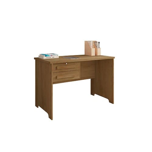 A Escrivaninha Alemanha é perfeita para quem precisa trabalhar ou estudar, possui amplo espaço para fazer sua leitura, anotações, acomodar notebooks, livros e papéis, entre outras coisas. Oferece ainda duas gavetas, sendo uma com chave, com corrediças metálicas e puxadores em MDF que auxiliam na organização.