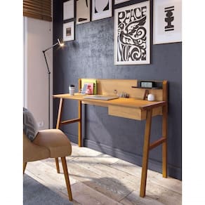 Escrivaninha Mesa Para Computador Job Nature - Imcal Móveis A Escrivaninha Mesa para Computador Job - Imcal Móveis, faz-se ideal para o seu home office ou área de estudos. Com um amplo tamplo deixará sua rotina mais fluída, além de diferenciais como suporte em aço para apoio, porta objetos com divisórias e passa fio. Garantindo uma organização em sua mesa, também conta com uma gaveta. Além do design exclusido e super moderno, proporcionando estilo e autênticidade ao seu ões do Produto montado:Altura: 95,2 cmLargura: 127 cmProfundidade: 47,2 cmObservações:- Gavetas com corrediças telescópicas;- Suporte superior em Aço;- Porta objetos;- Pés em madeira maciça;- Pintura ultravioleta com acabamento amadeirado. Marca: Não Informado