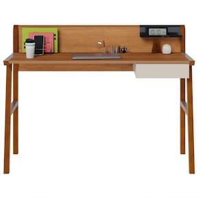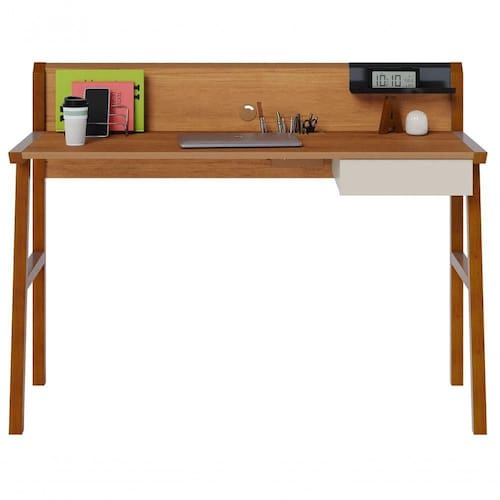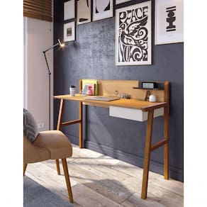 Escrivaninha Mesa Para Computador Job Off White Com Nature - Imcal Móveis