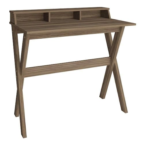 Com um design retrô que lembra o estilo vintage italiano, essa peça além de ser bastante funcional ainda vai dar um ar de elegância ao seu cantinho de trabalho ou estudos, pois seus pés cruzados e 3 nichos junto à mesa de trabalho garantem charme e aconchego ao ambiente, principalmente quando aliados a cor Nogal que dá um ar ainda mais retrô.