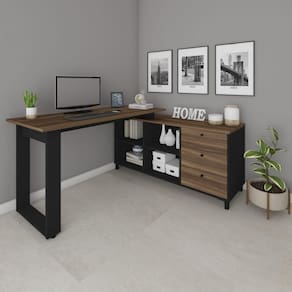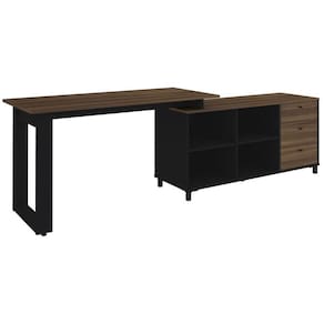 Escrivaninha Multifuncional em L - Next Ipê/Preto - Organize, Decore e Otimize Seu Espaço de Trabalho