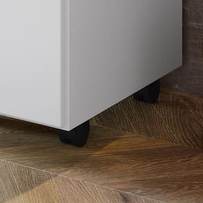 Rodízios que facilitam a movimentação da escrivaninha, permitindo flexibilidade no espaço.