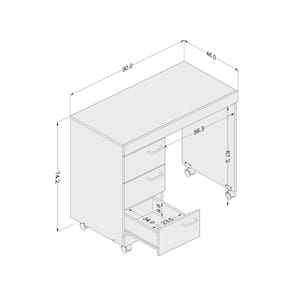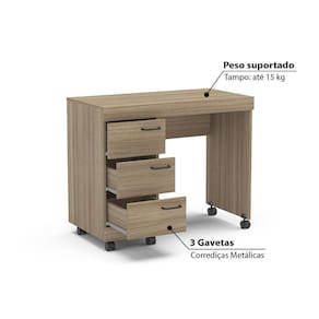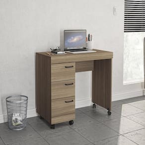 Escrivaninha Osaka com 3 Gavetas e Rodízios - Castanho