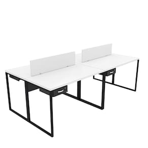 Invista no bem-estar da sua equipe com a estação de trabalho estilo industrial de 4 lugares com gavetas da Linha de Estações de Trabalho da Netmobil.