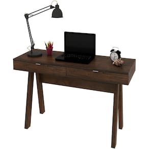 Escrivaninha Para Escritório Cavalete 2 Gavetas Rústico A Escrivaninha Cavalete une um design contemporâneo com a praticidade que seu escritório precisa. Sua estrutura em MDP de alta qualidade e acabamento em BP garante durabilidade, resistência e um visual sofisticado para qualquer ambiente. Dimensões da Escrivaninha para Escritório Cavalete 2 Gavetas: - Altura: 75,5 cm - Largura: 120 cm - Profundidade: 45 cm