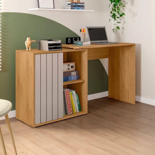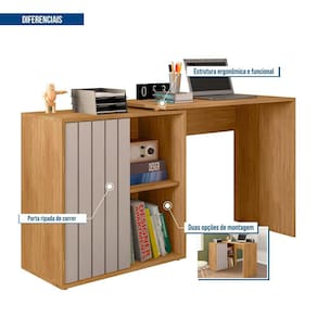 A Mesa Start é perfeita! Ela irá te surpreender com seu design moderno e cores marromis, porta de correr frisada, remetendo charme e elegância ao ambiente de trabalho. Produzida com material de alta qualidade, possui robustez, sua estrutura é de MDP de 15mm. Possui 1 porta com espaço interno para acomodar objetos, o móvel oferece maior praticidade, deixando os materiais necessários mais próximos e acessíveis. Sua prateleira é ampla, com divisão em nicho, é perfeita para organizar seu trabalho. Realmente é muito funcional e encantadora! Produto Montado: Sim Acabamento do Tampo: Finish Foil Acabamento dos Pés: Laca Acompanha Manual de Instalação: Sim Ambiente Principal: Escritório codigo_ean: 7909903478813 Complexidade da Montagem: Baixa: pode ser montado por uma pessoa sozinha Cor: Buriti/Cinza Cor do Produto: Buriti/Cinza Cor Flex: Não Cor Interna: Buriti Dobrável: Não Escala de Brilho: Fosco Espessura do Tampo: 15 mm Formato: Retangular Itens Inclusos: 1 Mesa para Computador Kit Ferragens Manual de Instrução Manual de Especificação Técnica: https://product-hub-prd.madeiramadeira.com.br/878207/documents/0208ec9d-ed55-48f2-8988-74722109ae0b1648401ftmesatech.pdf Manual de Montagem e Instalação: https://product-hub-prd.madeiramadeira.com.br/878207/documents/932c718e-e362-4313-9327-33eea6a0f0ad1648400eqmesatechediCAoa.pdf Material da Estrutura: MDP Material do Puxador da Porta: MDF Material do Tampo: MDP Material dos Pés: MDP Material Principal: MDP Montagem Flex: Não Necessita Montagem: Sim Origem do Produto: Nacional Pés com Regulagem de Altura: Não Pés Reguláveis: Não Peso: 26,47 kg Peso Máximo por Prateleira: 5 kg Possui Painel: Não Possui Painel de TV: Não Possui Passa Cabos: 02 Possui Porta Objetos: Não Possui Portas: Sim Possui Prateleiras: Sim Possui suporte para CPU: Não Possui Suporte para Teclado: Não Possui Vidro: Não Quantidade de Nichos: 02 Quantidade de Prateleiras: 01 Prateleira Recomendações de Uso, Manutenção e Limpeza: Limpar com pano macio levemente umedecido e em seguida pano macio seco. Não utilizar produtos abrasivos (lixas, esponjas) e/ou produtos a base de solventes (thinner, aguarrás). Sapatas Niveladoras: Sim Sistema de Montagem: Utiliza-se na montagem do produto sistema de fixação minifix, dobradiças, dispositivos angulares, cavilhas, parafusos, porcas cilindricas, entre outros; Suporta Até (kg): 24 kg Tipo de Dobradiça/Corrediça da Porta: Metálica Ean: 7909903478813