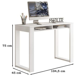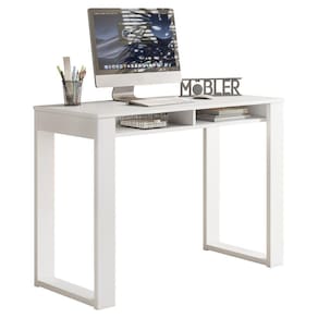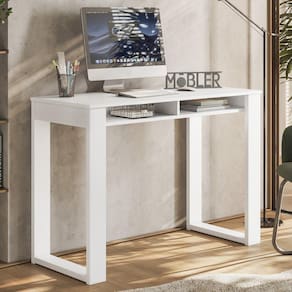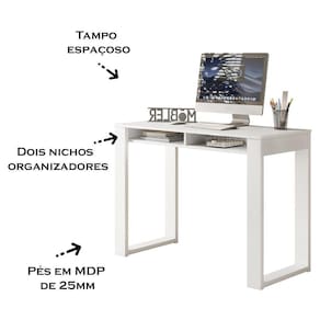 Escrivaninha para Escritorio Megow 104 cm, uma excelente opção para você que busca design funcional, moderno e fácil de incluir em qualquer ambiente. Estrutura em MDP de 15 e 25 mm, pintura com acabamento em UV (Fosco). Composta por tampo com amplo espaço para acomodar seu notebook, possibilitando a disposição de decorações e demais objetos, ideal para deixar seus itens mais utilizados sempre à mão, 2 nichos organizadores e acompanha sapatas plásticas. Suporta até 20kg. Perfeita para deixar seu escritório aconchegante e organizado. Este móvel chegará na sua casa separado em 1 volume.