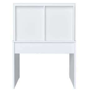 Painel fixado no tampo da escrivaninha em MDP 15mm, nele possui um nicho e uma prateleira para facilitar na organização de objetos decorativos, livros, apostilas, papéis e canetas.