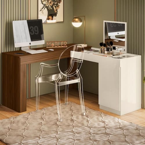 Transforme seu quarto em um verdadeiro refúgio de beleza e organização! Nossa escrivaninha multifuncional é a peça-chave que você precisa para criar um ambiente elegante e funcional. Com espelho, porta-joias e diversos compartimentos, ela oferece tudo o que você precisa para cuidar de si mesma e deixar seus pertences sempre à mão. Não perca essa oportunidade e garanta já a sua!