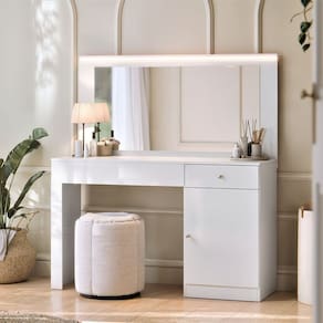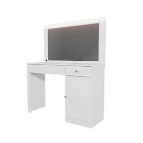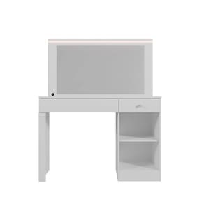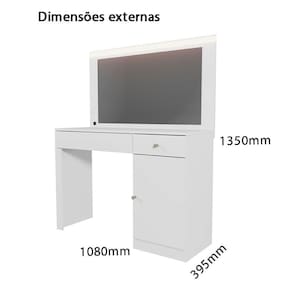 Lindo camarim nina, possui 2 gavetas com corrediças telescópica abre completamente, facilitando o acesso a todo o conteúdo da gaveta sem esforço.sendo 1 gaveta possui com divisor interno que proporciona organização eficiente de maquiagens, bijuterias ou acessórios.), possui também perfil de led(luz branca)que proporciona uma iluminação uniforme e clara, ideal para maquiagem ou cuidados pessoais, espelho de 0,3cm que oferece uma boa área de visualização, ideal para o uso diário, uma porta com puxador para guardar itens maiores ou que não precisam ficar visíveis. Acabamento da Gaveta: Pintura UV Acabamento da Porta: Pintura UV Acabamento da Prateleira: Pintura UV Acompanha Banqueta: Não Altura do Espelho: 50 cm Ambiente Principal: Quarto codigo_ean: 7900288225559 Complexidade da Montagem: Alta: deve ser montado por um montador especializado Cor: Branco Fosco Cor do Produto: Branco Fosco Escala de Brilho: Fosco Escala de Brilho da Gaveta: Fosco Escala de Brilho da Porta: Fosco Escala de Brilho da Prateleira: Fosco Espessura do Espelho: 3 mm Formato do Espelho: Retangular Gaveta com Chave: Não Informações Complementares: POSSUI 2 GAVETAS COM CORREDIÇA TELESCÓPICA(SENDO 1 GAVETA COM DIVISOR INTERNO), PERFIL DE LED(LUZ BRANCA), ESPELHO DE 3mm, 1 PORTA, PUXADORES Itens Inclusos: 1 Penteadeira e Kit Ferragens Largura do Espelho: 90 cm Linha ou Coleção: Nina Manual de Montagem e Instalação: https://product-hub-prd.madeiramadeira.com.br/377941489/documents/d1b8da8a-8a65-4c6c-be28-b7831fd73203318883227781757341149271.pdf Marca: Mobler Material da Gaveta: MDP Material da Porta: MDP Material da Prateleira: MDP Material do Puxador da Gaveta: Plástico Material do Puxador da Porta: Plástico Material Principal: MDP Necessita Montagem: Sim Origem do Produto: Nacional Peso: 29,4 kg Peso Máximo por Gaveta: 1 kg Peso Máximo por Prateleira: 3 kg Possui iluminação: Sim Possui Moldura: Não Possui Pés: Não Possui Porta Objetos: Sim Possui Vidro: Não Quantidade de Espelho: 01 Recomendações de Uso, Manutenção e Limpeza: Para conservar a aparência e a durabilidade do produto utilizar pano macio e úmido, não usar solventes ou abrasivos Sapatas Niveladoras: Não Sistema de Montagem: Pregos, parafusos e cavilhas Suporta Até (kg): 20 kg Tampo Basculante: Não Tipo de Corrediça da Gaveta: Metálica Telescópica Tipo de Dobradiça/Corrediça da Porta: Metálica Tipo de Fixação do Espelho: Silicone Tipo de Lâmpada: FITA DE LED Tipo de Porta: Bater Tipo de Puxador da Gaveta: Externo Tipo de Puxador da Porta: Externo