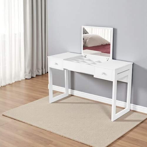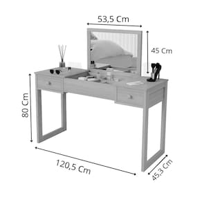 Escrivaninha Penteadeira Luanda com Espelho em MDF Organização, Beleza e Funcionalidade para o Quarto. Transforme seu ambiente com a Escrivaninha Penteadeira Luanda, um móvel 2 em 1 que une praticidade, elegância e funcionalidade. Fabricada em MDF de alta qualidade, possui estrutura resistente, acabamento sofisticado e design moderno que combina perfeitamente com qualquer decoração de quarto. O espelho amplo oferece a visão ideal para maquiagem, skincare e cuidados diários, tornando sua rotina muito mais prática e agradável. Além disso, conta com gavetas espaçosas e nichos internos para manter maquiagens, acessórios e objetos pessoais sempre bem organizados. Medidas aproximadas: - Altura: 80 cm (mesa) + 45 cm (espelho aberto); - Largura: 120,5 cm; - Profundidade: 45,3 cm; Destaques do produto: - Estrutura em MDF durável e resistente; - Espelho para maquiagem e cuidados diários; - Pode ser usada como penteadeira ou escrivaninha; - Gavetas e divisórias internas para organização; - Design moderno, versátil e funcional; - Ideal para quartos, closets ou home office; A Escrivaninha Penteadeira Luanda com Espelho é a escolha perfeita para quem busca um móvel elegante, prático e versátil, garantindo conforto, beleza e organização no dia a dia. IMAGENS MERAMENTE ILUSTRATIVA! Marca: Não Informado