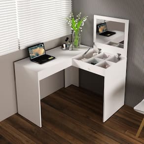 Destaque 2: 2 em 1: pode ser utilizado como escrivaninha ou penteadeira.