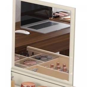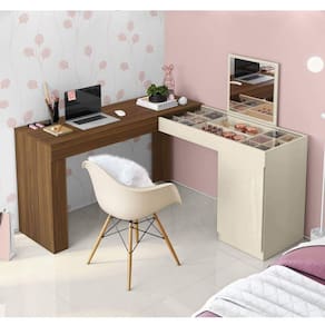 Penteadeira Crow um misto de beleza e funcionalidades é o que define esse produto, um porta convencional com um espaço a mais para ajudar na organização do seu quarto, painel fixo com espelho, nichos organizador de maquiagem para acabar de vez com aquelas maquiagens e joias espalhadas e não para por aí vidros de correr para dar aquela modernizada no produto, pintura UV e fosco com brilho. Esse produto irá te surpreender! Possui Suporte para Teclado: Não Possui Passa Cabos: Não Acabamento da Prateleira: Pintura UV Escala de Brilho da Prateleira: Semi-Brilho Acabamento: Pintura UV Acabamento da Porta: Pintura UV Acompanha Banqueta: Não Altura: 75 cm Altura do Espelho: 40 cm Ambiente Principal: Quarto Complexidade da Montagem: Alta: deve ser montado por um montador especializado Cr do Produto: Freijó/Off White Cr Flex: Não Cr Interna: Freijó/Off White Escala de Brilho: Semi-Brilho Escala de Brilho da Porta: Semi-Brilho Espessura do Espelho: 3 mm Espessura do Vidro: 3 mm Estilo: Moderno Formato: Em L Formato do Espelho: Quadrado Itens Inclusos: 1 Penteadeira e Manual de Montagem. Largura: 136 cm Largura do Espelho: 40 cm Largura Frontal: 136 cm Largura Lateral: 136 cm Linha ou Coleção: Glamour Material da Porta: MDP Material da Prateleira: MDP Material Principal: MDP Medida da Moldura: 25mm Montagem Flex: Não Necessita Montagem: Sim Peso: 36,5 kg Peso Máximo por Prateleira: 3 kg Possui Espelho: Sim Possui Gavetas: Não Possui iluminação: Não Possui Moldura: Sim Possui Pés: Não Possui Porta Objetos: Sim Possui Portas: 01 Possui Prateleiras: 01 Possui suporte para CPU: Não Possui Vidro: Sim Profundidade: 136 cm Quantidade de Espelho: 01 Recomendações de Uso, Manutenção e Limpeza: Pano úmido Sapatas Niveladoras: Sim Sistema de Montagem: Parafusos. Suporta Até (kg): 20 kg Tipo de Dobradiça/Corrediça da Porta: Metálica Tipo de Fixação do Espelho: Silicone Tipo de Porta: Bater Tipo de Puxador da Porta: Embutido