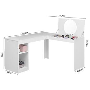 Escrivaninha Penteadeira em L Princesa Branca - Branco