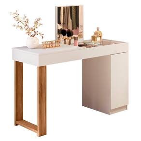 Escrivaninha Penteadeira Marih 121 cm, uma excelente opção para você que busca design funcional, moderno e fácil de incluir em qualquer ambiente. Estrutura em MDP de 12, 15 e 25 mm, pintura com acabamento em UV (Fosco). Composta por uma porta com dobradiças metálicas, prateleira interna, painel fixo com espelho quadrado, nicho divisor organizacional com vidro deslizante para objetos e maquiagens e acompanham sapatas plásticas. Suporta até 25kg. Perfeita para organizar suas maquiagens ou outros produtos proporcionando praticidade e conforto. Este móvel chegará na sua casa separado em 1 volume.
