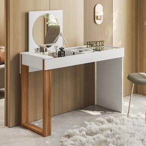 Material: MDP, com espelho Redondo 45x43,2x15 cm, Tampo de MDP basculante com pistão a gás, tampo de vidro 3 mm de correr;