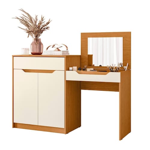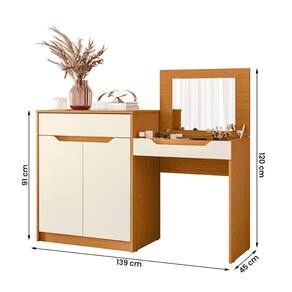 Material: MDP, espelho 45cm x 36cm, tampo basculante com divisória interna;