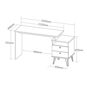 Tampo em MDP 18mm com fita de borda PVC com 2 mm de espessura; Estrutura em MDP de 15mm com fita de borda PVC com 0,45mm de espessura; Pés em metal com feltro autoadesivo para proteger o piso; Lateral com sapatas plásticas; Duas gavetas com corrediças metálicas; Fixação com tambor, parafuso minifix; Acabamento em BP; Possui três opções de largura da mesa; Medidas do produto:113,5cm/128,5cm/143,5cmx44,6cmx75cm) (CXPXA)