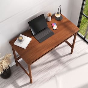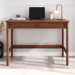 A Escrivaninha Rattan Madeira Rodrigo 2 Gavetas é produzida em madeira maciça, oferece amplo espaço útil no tampo, ideal para acomodar materiais de trabalho, estudo ou decoração.