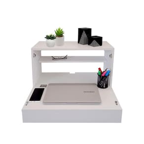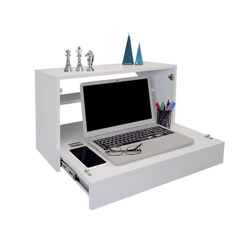 Escrivaninha Suspensa Bancada Compacta Com Gaveta Mesa Para Notebook Branco Laca Escrivaninha Suspensa Bancada Mesa para Notebook ou Tablet Confeccionada com materiais de alta qualidade, possui nicho e gaveta para organizar livros, documentos e itens decorativos, espaço interno para acomodar seu notebook.Na hora de Trabalhar, Estudar ou relaxar, nada como ter um Cantinho Aconchegante para deixar você mais Confortável.O móvel é fixo na parede, ajudando a ocupar menos espaço. Incrível!Material: MDF LaqueadoEspessura: 15 mmAcabamento: LacaCor: Branco01 Gaveta com Trilhos TelescópicosAltura: 39 cm Largura: 62 cm Profundidade: 30 cm Modelo: Suspenso/ ParedePrateleira Interna RemovívelAbertura atrás para passagem dos fios Disponível também nas cores: Branco, Preto e Curupixa(Consulte nossos outros anúncios)Somos FabricantesInstalação: Acompanha parafusos e buchas para fixação. O produto será entregue MONTADO. (não realizamos instalação)É recomendável fixação do móvel na altura de 63cm do chão até a prateleira do NotebookConteúdo da embalagem: 01 EscrivaninhaGarantia: 03 meses contra defeitos de fabricaçãoAtenção: Item composto apenas pela Escrivaninha, itens decorativos NÃO acompanham o produto. do produto: Não nos responsabilizamos pelo transporte por escadas/elevadores, guincho ou içamento deste produto. Qualquer despesa é de responsabilidade do cliente. Cuidados: Para conservar aspectos e garantir a durabilidade do produto: utilizar pano macio e levemente umedecido. Nunca use solventes ou abrasivos.