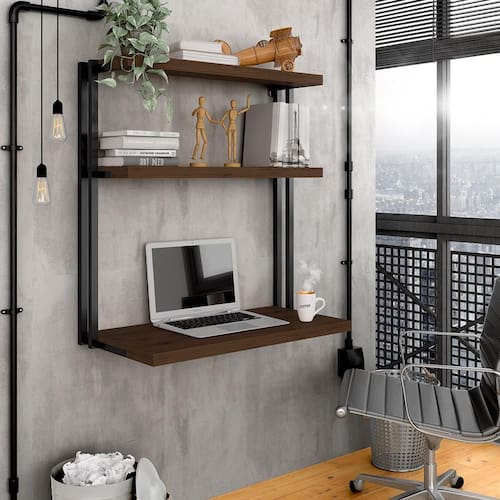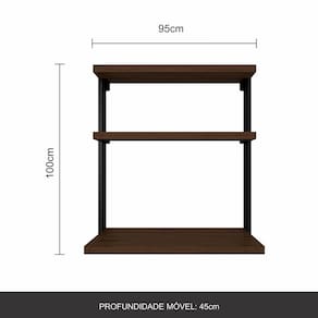 A Escrivaninha Suspensa Creta, na hora do trabalho ou do estudo, nada como ter um cantinho aconchegante para deixar você mais confortável, permitindo uma ótima organização e otimizando ainda mais o espaço útil.Detalhes Técnicos:Medidas da escrivaninha Montada: A: 100 cm | L: 95 cm | P: 45 cmMateriais de Fabricação:- Material: MDP 15 e 25 MM- Pintura da estrutura: Pintura Epoxi fosca- Pintura das prateleiras: Pintura UV texturiza fosco-Tonalidade: Preto Fosco/Imbuia- Peso Suportado prateleiras: 6 kg cada (podendo variar da estrutura da parede)- Fixado na parede : Estrutura própria para fixação- Estruturado com material de altíssima qualidade, evitando fungos e mofo.Conteúdo da Embalagem:- 01 Escrivaninha- Manual de Montagem- Acessório para Montagem: Cavilhas, Parafusos, Sache de cola, Etiqueta, Tapa furoObservações Importantes:- As imagens ambientadas são meramente ilustrativas e podem apresentar itens que não incorporam o produto;- Todos os nossos produtos são novos, acompanham documento fiscal e possuem garantia de 3 meses, essa garantia cobre somente defeitos de fabricação;- A entrega só será efetuada no endereço do CEP, caso o endereço seja diferente do CEP informado no pedido, a entrega terá cobrança adicional e o comprador arcará com as despesas;- Não realizamos entregas para zonas rurais, via caminhos fluviais e distritos, por isso não aceitamos CEP GERAL da região;- Não é possível realizar o agendamento de entrega do produto, é necessário que acompanhe o rastreio de seu pedido para saber a previsão de entrega;- As entregas somente serão realizadas para um responsável maior de idade (+18);- Enviamos para diversos estados, sendo assim nossas entregas são realizadas por transportadoras parceiras de nossa empresa. Confira as dimensões antes da compra e certifique-se de que o produto passará por elevadores, portas e corredores já que nossa entrega não inclui a subida de lances de escada, transporte por elevador e o lançamento de produtos, em caso de condomínios residenciais a entrega é feita somente até a portaria. Todas as entregas são realizadas em dias e horários comerciais;- Ao receber os seus produtos observe se a embalagem se encontra em perfeitas condições. Se você adquiriu algum móvel, confira atentamente a quantidade de volumes e o aspecto físico das embalagens. Confira também se a cor do móvel está de acordo com o seu pedido;- O prazo de cancelamento por arrependimento é de até 7 dias corridos a contar da data de recebimento;- Os produtos e assistências são enviados DESMONTADOS, MONTAGENS E DESMONTAGENS recomendamos sempre a contratação de um montador profissional e é válido lembrar que o custo desses serviços é por conta do comprador;- Objetos decorativos que aparecem na foto não acompanham o produto;- Evitar a exposição direta à luz solar e à umidade;- Para limpeza, limpar com pano macio e seco, não utilizar qualquer outro tipo de produtos químicos;- As cores do produto podem variar de acordo com o monitor, a iluminação do ambiente ou sua percepção visual;