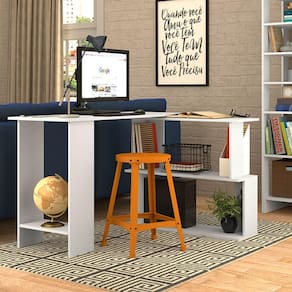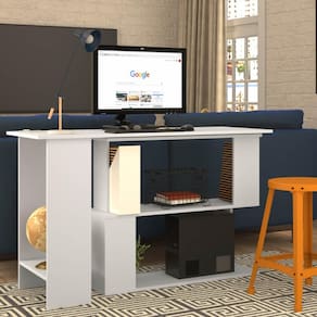 A escrivaninha B07 é produzida em MDP 15mm, acabamento FF. Possui sapatas deslizadoras, 2 nichos, 1 prateleira que suporta até 5kgs e 1 nicho/suporte para livros. A parte lateral onde contém os nichos, se move, podendo ser usada reta ou em ângulo. Produto suporta até 18kgs. Conteúdo da embalagem: móvel, ferragens e manual de montagem. A fixação das peças e/ou acessórios é feita por parafusos, cavilhas e minifix. Para uma limpeza mais efetiva, utilizar apenas uma flanela seca. Não utilizar produtos abrasivos. Garantia de 03 meses contra defeitos de fabricação. Medidas do produto (AxLxP) reta: 74,5x120x42cm. Medidas do produto (AxLxP) ângulo: 74,5x120x80cm.Peso do produto: 20,7kgs. Marca: Emovell