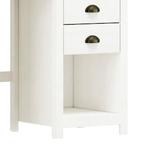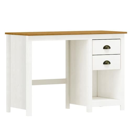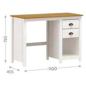 A Escrivaninha Topázio 2 Gavetas da Finestra Móveis une funcionalidade, durabilidade e um design sofisticado para compor ambientes de trabalho ou estudo com elegância. Fabricada com estrutura em madeira maciça de pinus de reflorestamento, possui acabamento acetinado em verniz PU e UV, garantindo resistência e um visual refinado. Conta com 2 gavetas espaçosas com corrediças telescópicas, suportando até 5 kg distribuídos, além de um nicho funcional para organizar itens de uso frequente. Os puxadores metálicos em ouro envelhecido adicionam um toque clássico ao design, enquanto os pés alongados em madeira maciça proporcionam charme e estabilidade. É a escolha perfeita para quem busca um móvel prático, bonito e de alta qualidade para o dia a dia.