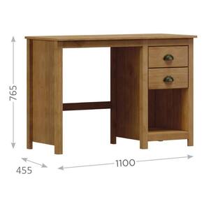 A Escrivaninha Topázio 2 Gavetas da Finestra Móveis une funcionalidade, durabilidade e um design sofisticado para compor ambientes de trabalho ou estudo com elegância. Fabricada com estrutura em madeira maciça de pinus de reflorestamento, possui acabamento acetinado em verniz PU e UV, garantindo resistência e um visual refinado. Conta com 2 gavetas espaçosas com corrediças telescópicas, suportando até 5 kg distribuídos, além de um nicho funcional para organizar itens de uso frequente. Os puxadores metálicos em ouro envelhecido adicionam um toque clássico ao design, enquanto os pés alongados em madeira maciça proporcionam charme e estabilidade. É a escolha perfeita para quem busca um móvel prático, bonito e de alta qualidade para o dia a dia.