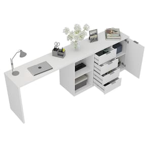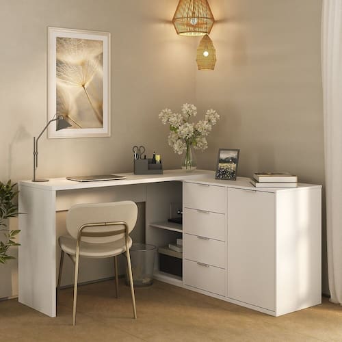 Transforme seu home office ou escritório com a Escrivaninha Versátil Foscarini, pensada para unir elegância, funcionalidade e praticidade no dia a dia. Seu design moderno valoriza qualquer ambiente, enquanto as 4 gavetas com corrediças telescópicas oferecem abertura total e deslizamento suave para guardar documentos e acessórios com facilidade. Os nichos abertos são ideais para livros e objetos decorativos, deixando tudo ao alcance das mãos. Os puxadores em alumínio trazem um toque sofisticado, e o acabamento premium garante resistência e longa durabilidade. O melhor? A montagem é reversível com 4 opções de uso, adaptando-se a espaços pequenos ou amplos, podendo ser montada em L ou reta. Fácil de limpar e montar, é a escolha perfeita para quem busca organização e estilo em um só móvel. Produto Montado: Sim Acabamento do Tampo: BP Acompanha Manual de Instalação: Sim Ambiente Principal: Escritório codigo_ean: 7900288249845 Complexidade da Montagem: Média: pode ser montado por mais de uma pessoa e/ou necessite de maior conhecimento para montagem Cor: Branco Cor da Base: Branco Cor do Produto: Branco Cor do Tampo: Branco Cor Interna: Branco Dobrável: Não Escala de Brilho: Fosco Espessura do Tampo: 25 mm Formato: Em L Gaveta com Chave: Não Itens Inclusos: 1 Escrivaninha, Kit Ferragens e Manual de Montagem Largura do Segundo Lado: 132 cm Manual de Montagem e Instalação: https://product-hub-prd.madeiramadeira.com.br/182605160/documents/a6dd4dbc-1e6a-4232-8e59-8f287c9311bf324467746631759150199763.pdf Marca: Foscarini Material da Estrutura: MDP Material do Puxador da Porta: Alumínio Material do Tampo: MDP Material Principal: MDP Montagem Flex: 4 opções de montagem: em L para a direita, em L para a esquerda, extensível reta para a direita, extensível reta para a esquerda Necessita Montagem: Sim Origem do Produto: Nacional Peso: 60 kg Peso Máximo por Gaveta: 10 kg Peso Máximo por Prateleira: 14 kg Possui Acabamento na Parte de Trás: Sim Possui Estante: Não Possui Gaveta para Pasta Suspensa: Não Possui Gaveteiro: Sim Possui Porta Objetos: Sim Possui Prateleiras: Sim Possui Vidro: Não Quantidade de Gavetas: 04 Gavetas Quantidade de Nichos: 02 Quantidade de Prateleiras: 02 Prateleiras Recomendações de Uso, Manutenção e Limpeza: Limpar com flanela ou pano macio seco, não utilizar produtos abrasivos, desengordurantes, álcool ou solvente. Não expor o produto diretamente à luz solar e à umidade. Sistema de Montagem: Fácil, rápido e descomplicado, parafusos, minifix e cavilhas. Suporta Até (kg): 140 kg Tipo de Corrediça da Gaveta: Metálica Telescópica Tipo de Dobradiça/Corrediça da Porta: Aço