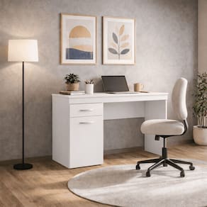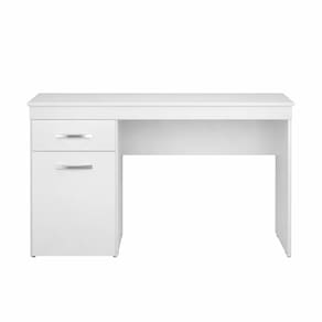 O modelo conta com tampo amplo para trabalho, 1 gaveta para organizar objetos pessoais e 1 compartimento com porta, ideal para guardar materiais e acessórios, mantendo o ambiente sempre em ordem. Os puxadores em ABS e as corrediças/dobradiças metálicas reforçam a durabilidade e o uso no dia a dia.