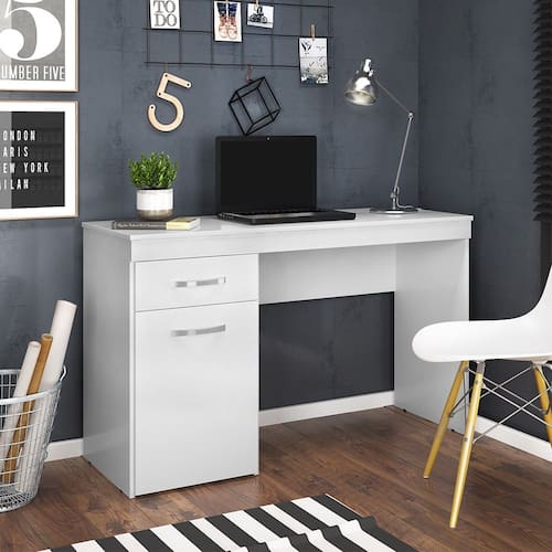 Características: Estrutura em MDP Acabamento em Pintura UV 01 Gaveta com corrediças metálicas 01 Porta com dobradiças metálicas Puxadores em Plástico ABS