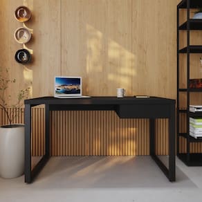 A mesa Yon YOME71351G combina funcionalidade com o design industrial. O tampo desta mesa é engrossurado em 40mm e as bordas possuem acabamento em fita de PVC de 01mm, proporcionando durabilidade e uma superfície muito resistente. Os pés são feitos em tubos de aço 30x50mm, conferindo estabilidade, robustez e uma imponente qualidade. A gaveta com corrediças telescópicas oferece praticidade e organização e sua combinação de materiais e proporções bem pensadas a tornam uma opção de escolha versátil e elegante para ambientes corporativos ou home offices. Acabamento do Tampo: BP Acabamento dos Pés: Pintura Acompanha Manual de Instalação: Sim Ambiente Principal: Escritório Complexidade da Montagem: Média: pode ser montado por mais de uma pessoa e/ou necessite de maior conhecimento para montagem Cor: Preto Cor da Base: Preto Cor do Produto: Preto Cor do Tampo: Preto Dobrável: Não Escala de Brilho: Fosco Espessura do Tampo: 40 mm Formato: Retangular Gaveta com Chave: Não Itens Inclusos: 1 Mesa Manual de Especificação Técnica: https://cdn2.madeiramadeira.com.br/prd/compace-sala-de-jantar/2366867-1727105966-951102-110174.pdf Manual de Montagem e Instalação: https://cdn2.madeiramadeira.com.br/prd/compace-sala-de-jantar/2365975-1727101464-951102-110173.pdf Material da Estrutura: Aço Material do Puxador da Gaveta: MDP Material do Tampo: MDP Material dos Pés: Aço Material Principal: MDP Montagem Flex: Sim Necessita Montagem: Sim Origem do Produto: Nacional Pés com Regulagem de Altura: Não Pés Reguláveis: Não Peso: 24,467 kg Possui Painel: Sim Possui Passa Cabos: 01 Possui Porta Objetos: Não Possui Portas: Não Possui Prateleiras: Não Possui suporte para CPU: Não Possui Suporte para Teclado: Não Possui Vidro: Não Quantidade de Gavetas: 01 Gaveta Recomendações de Uso, Manutenção e Limpeza: Para a limpeza, utilize flanela seca ou pano macio levemente umedecido em água. Utilize um pano seco em seguida. Evite contato com produtos químicos (solventes, thinner, acetona, etc) e não utilize nenhum tipo de esponja de aço. Sapatas Niveladoras: Sim Sistema de Montagem: Parafuso, Cantoneira L, Sapara Niveladora Suporta Até (kg): 93 kg Tipo de Corrediça da Gaveta: Metálica Telescópica Marca: Metalig