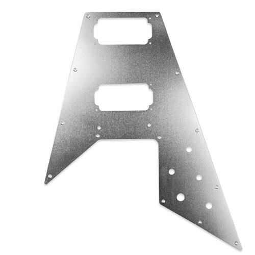 Escudo para Guitarra, modelo Flying-V para 2 Humbuckers (HH), 2.4mm de espessura e 13 furos, acabamento prata, Spirit Guitar Parts - 523-SR.