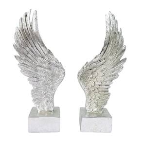 Escultura Asa De Anjo Decorativa Prata 25x11x6cm Kit 2pc Escultura de Asa de Anjo Prateada em Resina - Elegância e Espiritualidade para Sua Decoração Inigual Decor