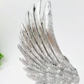 Não perca a oportunidade de adicionar uma peça decorativa sofisticada e inspiradora ao seu ambiente. Adquira sua escultura de asa de anjo prateada em resina hoje mesmo