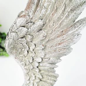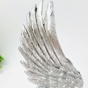 Não perca a oportunidade de adicionar uma peça decorativa sofisticada e inspiradora ao seu ambiente. Adquira sua escultura de asa de anjo prateada em resina hoje mesmo