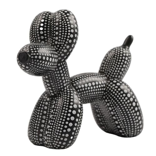 Material: Resina Tamanho: 18x9x20 cm Peso: 560 g Design impressionante de bolinhas — Esta estátua de cão-balão apresenta uma superfície preta ousada com intrincados pontos brancos, combinando arte abstrata com estética escultural divertida. Material de resina durável — Feita com resina de alta qualidade, esta peça é sólida, resistente ao desbotamento e fácil de manter, perfeita para exibições internas diárias. Decoração de arte contemporânea — Um ornamento exclusivo que combina expressão artística moderna com formas extravagantes, adequado para interiores minimalistas, ecléticos ou modernos. Dimensões ideais da tela — mede aproximadamente 18x9x20cm e pesa 560g, o que a torna estável e perfeita para mesas, entradas, estantes de livros ou telas de console. Ornamento interno versátil — adiciona personalidade a vários ambientes, como salas de estar, escritórios, corredores e lounges, aprimorando qualquer ambiente com seu apelo artístico moderno.
