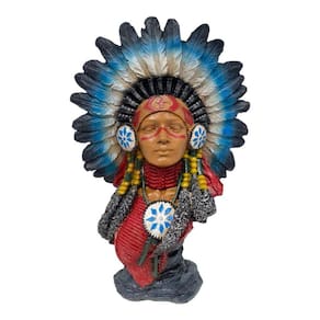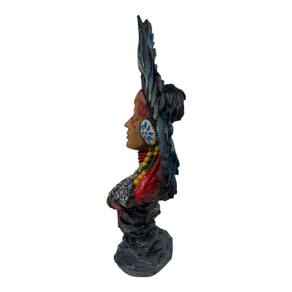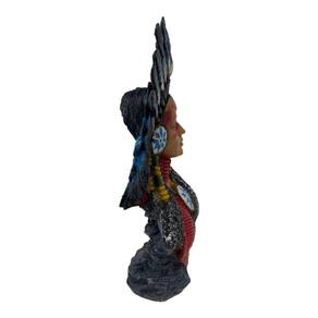 Escultura Busto Índia Cocar de Pena Colorida 29 cm em Resina