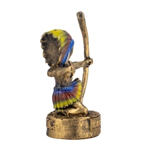 Celebre a força e a ancestralidade com essa belíssima escultura de Caboclo, confeccionada com riqueza de detalhes e acabamento em pintura vintage, que confere um ar rústico e tradicional à peça. Com 8 cm de altura, é perfeita para pequenos altares, decoração espiritual ou colecionadores que apreciam representações de entidades da cultura afro-brasileira e indígena. Um Caboclo, dentro das tradições espirituais brasileiras como a Umbanda e o Candomblé de Caboclo, é um espírito de grande sabedoria que representa a união entre o indígena brasileiro e o homem branco ou, em algumas vertentes, o indígena puro .