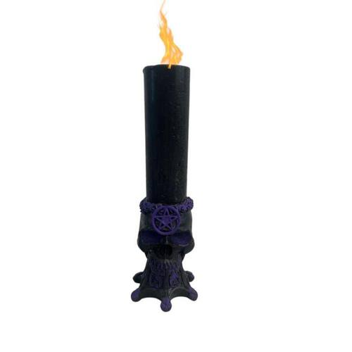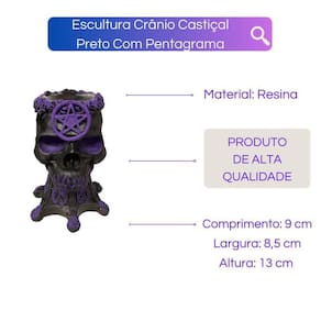 Escultura Crânio Castiçal Preto Com Pentagrama 13 cm Resina Escultura Crânio Castiçal Preto Com Pentagrama 13 cm Resina