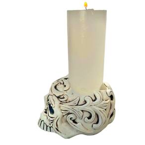 Escultura Crânio Porta Vela 7 Dias Resina 12x8cm Marfim