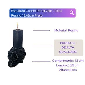 Escultura Cranio Porta Vela 7 Dias Resina 12x8cm Preto Escultura Cranio Porta Vela 7 Dias Resina 12x8cm Preto